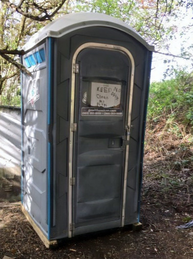 After discussions with the City on providing toilet facilities were unsuccessful, the group ordered up a port-a-potty paid for by donations from HAT members and others. Weekly service and rental fees for the portable toilet total $123 a month. The unit has been installed on the east side of Bertha Blvd, now vacant after the last group of campers moved away. A resident from the west side of the street has moved over to the other side to be able to keep an eye on the much-needed sanitation necessity.