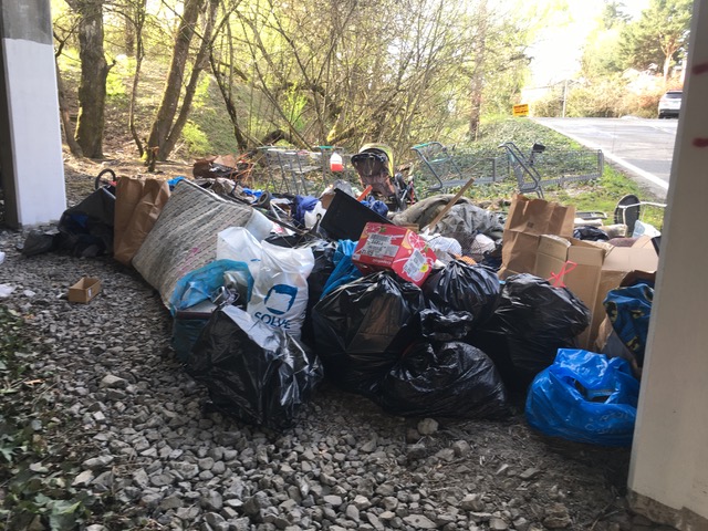On Saturday, April 3, a team of about 15 made up of Hillsdale Assistance Team (HAT) volunteers and camp residents cleaned up much of the site in about two hours, gathering trash to be collected at a later date.
